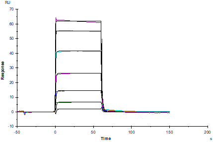 Protein A Chip captured Tie-2 Fc Chimera, Cynomolgus (Cat. No. UA010526), can bind Angiopoietin-2(275-496) His Tag, Human(Cat. No. UA010220) with an affinity constant of 0.93μM as determined in SPR assay.