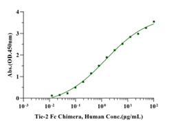 Immobilized Angiopoietin-2(275-496) His Tag, Human (Cat. No. UA010220) at 5.0μg/mL (100μL/well) can bind Tie-2 Fc Chimera, Human (Cat. No. UA010628) with EC50 of 1.00-2.09μg/ml.