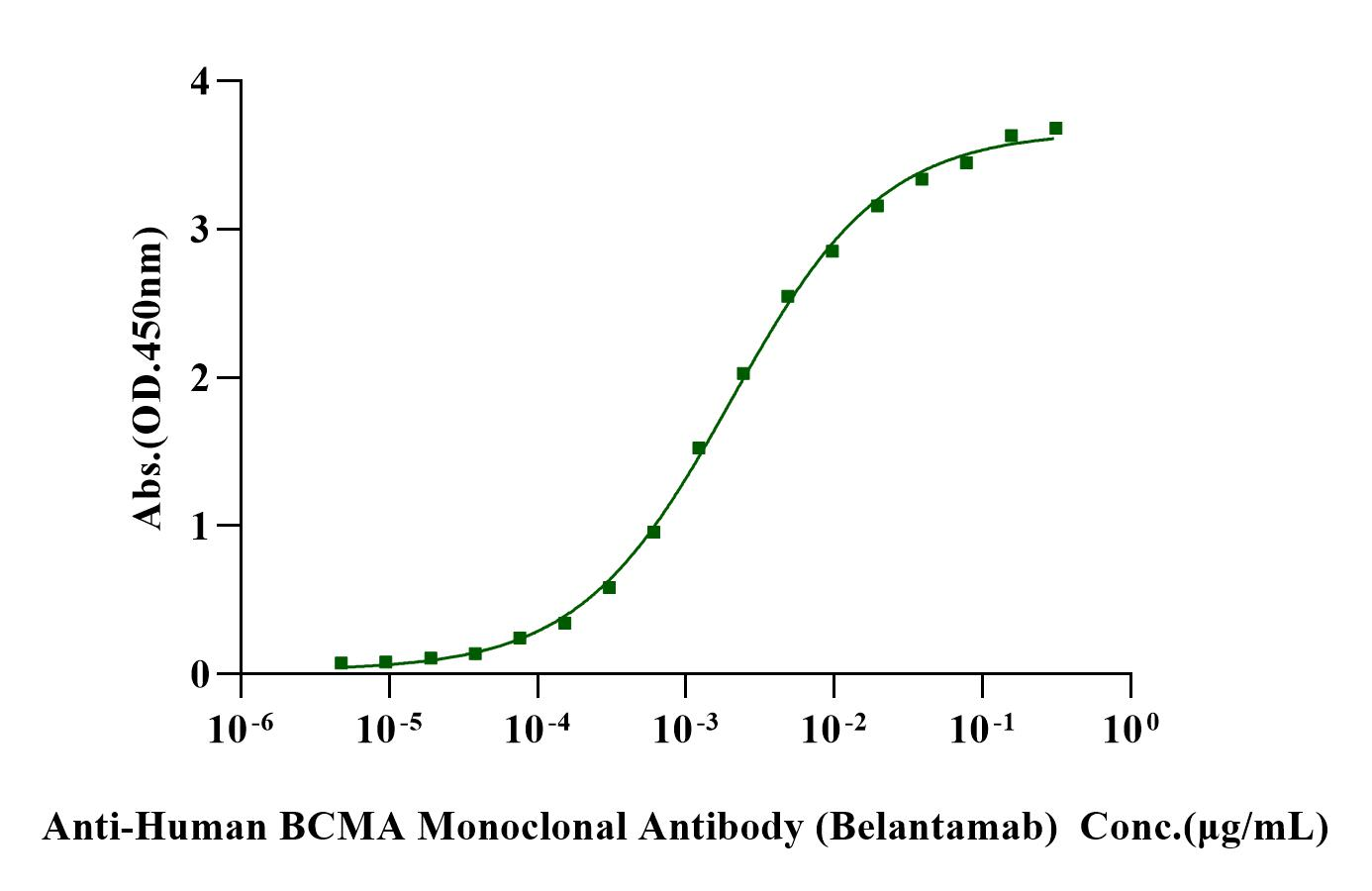 Immobilized Biotinylated BCMA His&Avi Tag, Human (Cat. No. UA010542) at 2 μg/mL on Streptavidin precoated (0.5μg/well) plate, can bind Anti-Human BCMA Monoclonal Antibody (Belantamab) with EC50 of 1.81-2.25 ng/ml.
