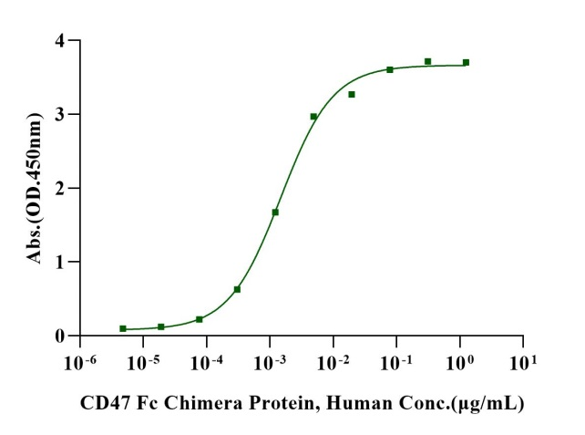 Immobilized Biotinylated SIRP-α/CD172a His&Avi Tag Protein, Cynomolgus (Cat. No. UA010820) at 2 μg/mL on Streptavidin precoated (0.5μg/well) plate, can bind CD47 Fc Chimera Protein, Human (Cat. No. UA010006) with EC50 of 1.19-1.84ng/ml.