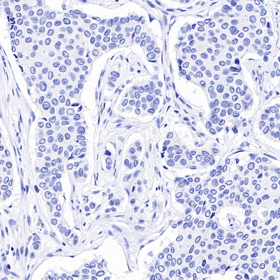 Negative control: IHC shows negative staining in paraffin-embedded human breast cancer. Anti-BSEP antibody was used at 1/1000 dilution, followed by a HRP Polymer for Mouse & Rabbit IgG (ready to use). Counterstained with hematoxylin. Heat mediated antigen retrieval with Tris/EDTA buffer pH9.0 was performed before commencing with IHC staining protocol.