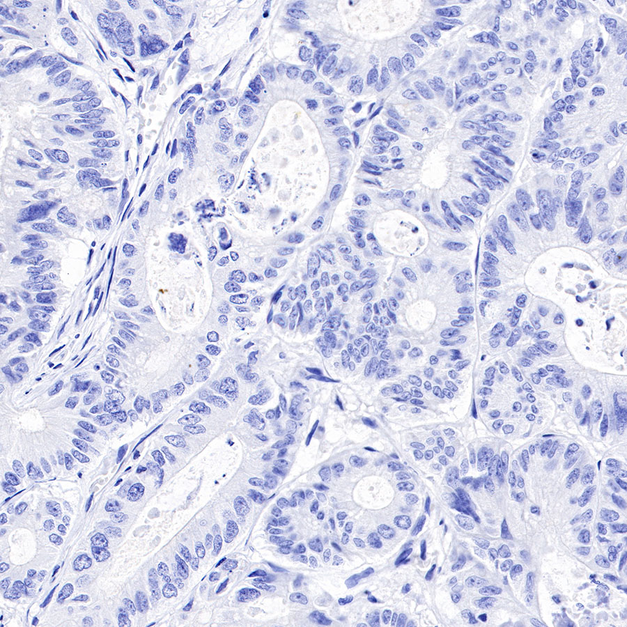Negative control: IHC shows negative staining in paraffin-embedded human colon cancer. Anti-BSEP antibody was used at 1/1000 dilution, followed by a HRP Polymer for Mouse & Rabbit IgG (ready to use). Counterstained with hematoxylin. Heat mediated antigen retrieval with Tris/EDTA buffer pH9.0 was performed before commencing with IHC staining protocol.
