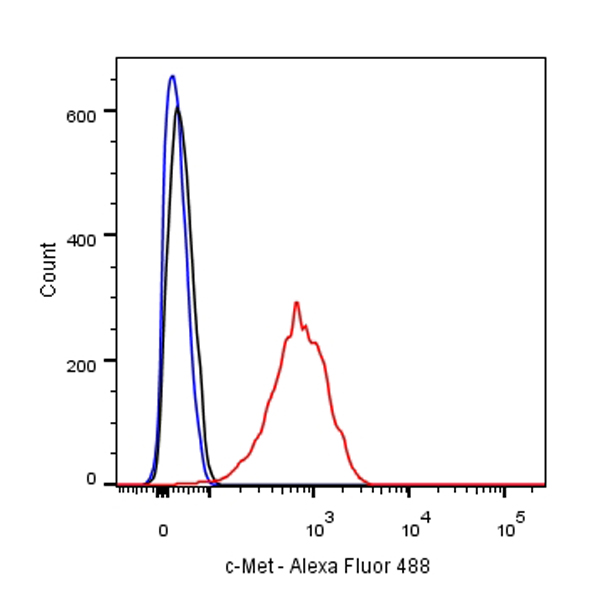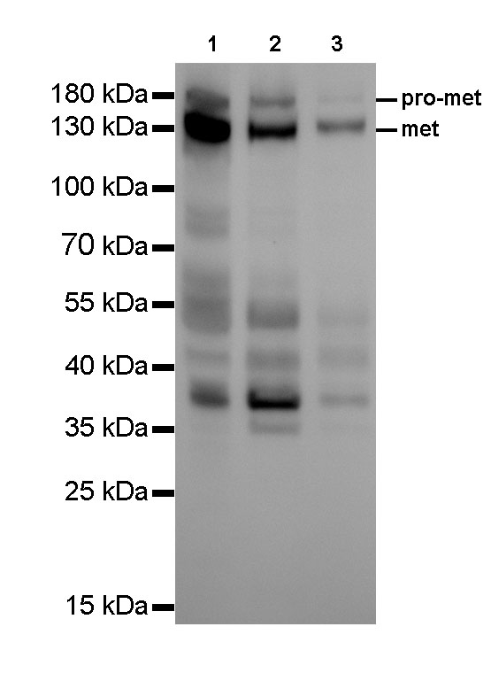 c-Met, also called tyrosine-protein kinase Met or hepatocyte growth factor receptor (HGFR), is a protein that in humans is encoded by the MET gene. The protein possesses tyrosine kinase activity. The primary single chain precursor protein is post-translationally cleaved to produce the alpha and beta subunits, which are disulfide linked to form the mature receptor. MET is a single pass tyrosine kinase receptor essential for embryonic development, organogenesis and wound healing. Hepatocyte growth factor/Scatter Factor (HGF/SF) and its splicing isoform (NK1, NK2) are the only known ligands of the MET receptor. MET is normally expressed by cells of epithelial origin, while expression of HGF/SF is restricted to cells of mesenchymal origin. When HGF/SF binds its cognate receptor MET it induces its dimerization through a not yet completely understood mechanism leading to its activation. Abnormal MET activation in cancer correlates with poor prognosis, where aberrantly active MET triggers tumor growth, formation of new blood vessels (angiogenesis) that supply the tumor with nutrients, and cancer spread to other organs (metastasis). MET is deregulated in many types of human malignancies, including cancers of kidney, liver, stomach, breast, and brain. Normally, only stem cells and progenitor cells express MET, which allows these cells to grow invasively in order to generate new tissues in an embryo or regenerate damaged tissues in an adult. However, cancer stem cells are thought to hijack the ability of normal stem cells to express MET, and thus become the cause of cancer persistence and spread to other sites in the body. Both the overexpression of Met/HGFR, as well as its autocrine activation by co-expression of its hepatocyte growth factor ligand, have been implicated in oncogenesis.