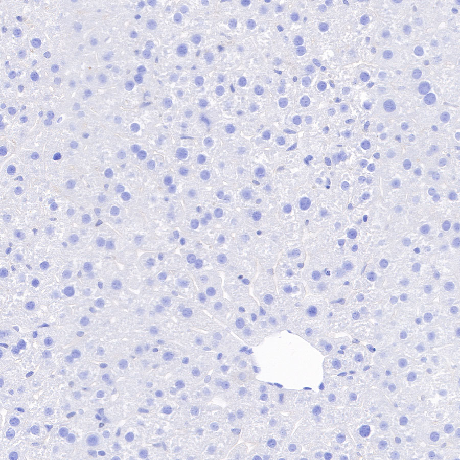 Negative control: IHC shows negative staining in paraffin-embedded mouse liver. Anti-CAIX antibody was used at 1/8000 dilution, followed by a HRP Polymer for Mouse & Rabbit IgG (ready to use). Counterstained with hematoxylin. Heat mediated antigen retrieval with Tris/EDTA buffer pH9.0 was performed before commencing with IHC staining protocol.