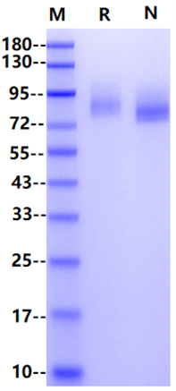 Human platelet-derived growth factor receptor, beta polypeptide (PDGFRB) is receptor that binds specifically to PDGFB. It is characterized by the presence of five immunoglobulin- like domains in their extracellular region and a split kinase domain in their intracellular region. The extracellular domain of human PDGF R beta contains 4 disulfide bonds and shares a 79% sequence identity with mouse and rat PDGF R beta. It is a cell surface tyrosine kinase receptor for members of the platelet-derived growth factor (PDGF) family. Recombinant soluble PDGFRB binds PDGF with high affinity and is potent PDGF antagonist.Many cell types, including fibroblasts and smooth muscle cells, express both the alpha and beta receptors.
