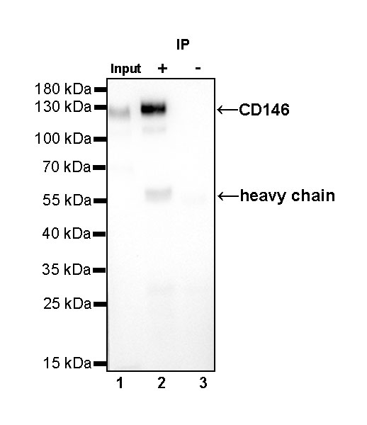 Western blot was performed on the immunoprecipitate using CD146 Rabbit mAb at 1/1000 dilution.