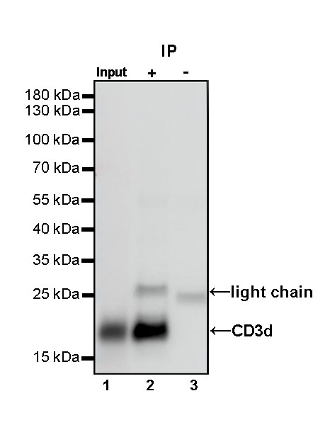 Western blot was performed on the immunoprecipitate using CD3d Rabbit mAb at 1/1000 dilution.