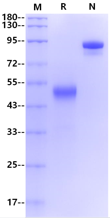 CTLA-4 Fc Chimera, Human, 2μg(R: reducing conditions, N: non-reducing conditions).