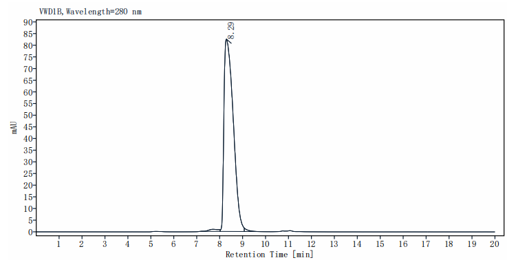 The purity of CXADR/CAR His Tag Protein, Human is more than 95% determined by SEC-HPLC.
