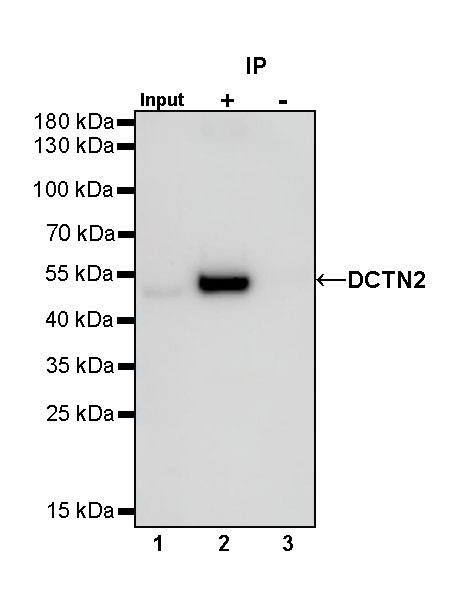 Western blot was performed on the immunoprecipitate using DCTN2 Rabbit mAb at 1/1000 dilution.