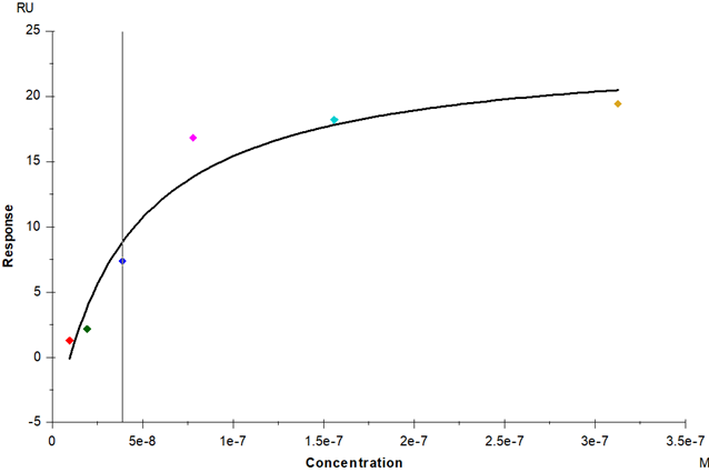 CM5 Chip captured EGF, Human (Cat. No. UA040003), can bind EGFR Fc Chimera, Human (Cat. No. UA010174) with an affinity constant of 0.31nM as determined in SPR assay.
