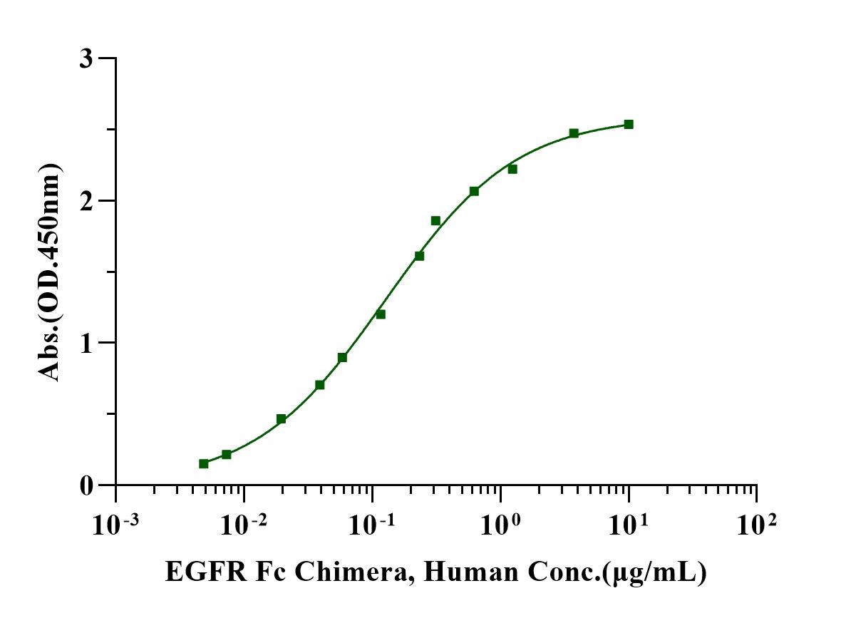 Immobilized EGF, Human (Cat. No. UA040003) at 0.5μg/mL (100μL/well) can bind EGFR Fc Chimera, Human (Cat. No. UA010174) with EC50 of 0.11-0.15μg/ml.