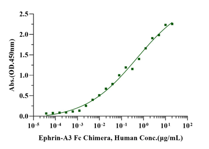 Immobilized EphA10 His Tag, Human (Cat. No. UA010609) at 1.0μg/mL (100μL/well) can bind Ephrin-A3 Fc Chimera, Human (Cat. No. UA010141) with EC50 of 0.23-2.35μg/ml.