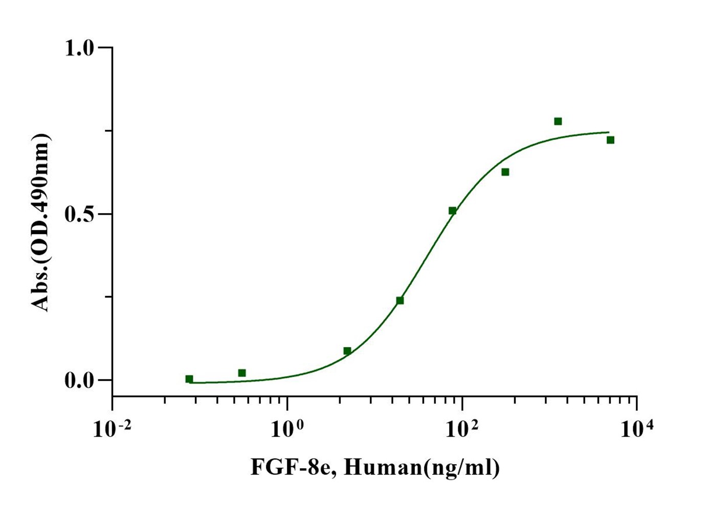 Fibroblast growth factor 8e (FGF-8e), a secreted heparin-binding protein, is a member of the fibroblast growth factor (FGF) family and is an isoform of FGF-8. Alternative splicing of fgf-8 gene gives rise to potentially four (a, b, e, f) different protein isoforms in human. FGF-8 is widely expressed during embryogenesis, and mediates epithelial-mesenchymal transitions. It plays an organizing and inducing role during gastrulation, and regulates patterning of the midbrain/hindbrain, eye, ear, limb and heart in the embryo.