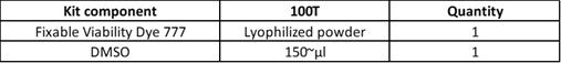 For reconstitution, pre-warm the kit to room temperature; add 100 µL of DMSO to one vial of Fixable Viability Dye 777 and mix until fully dissolved. After reconstitution, store aliquots at -20°C. Repeated freezing and thawing is not recommended.