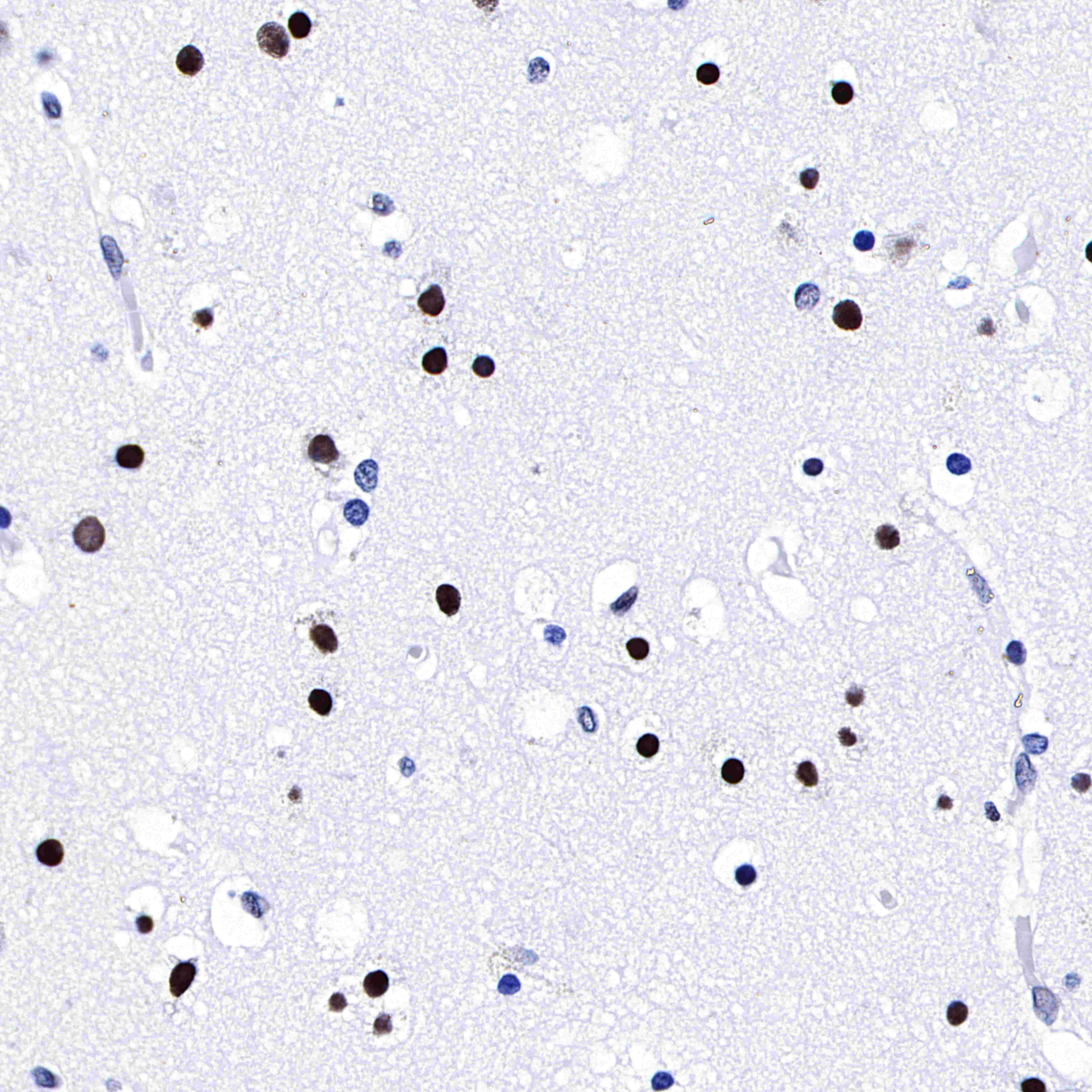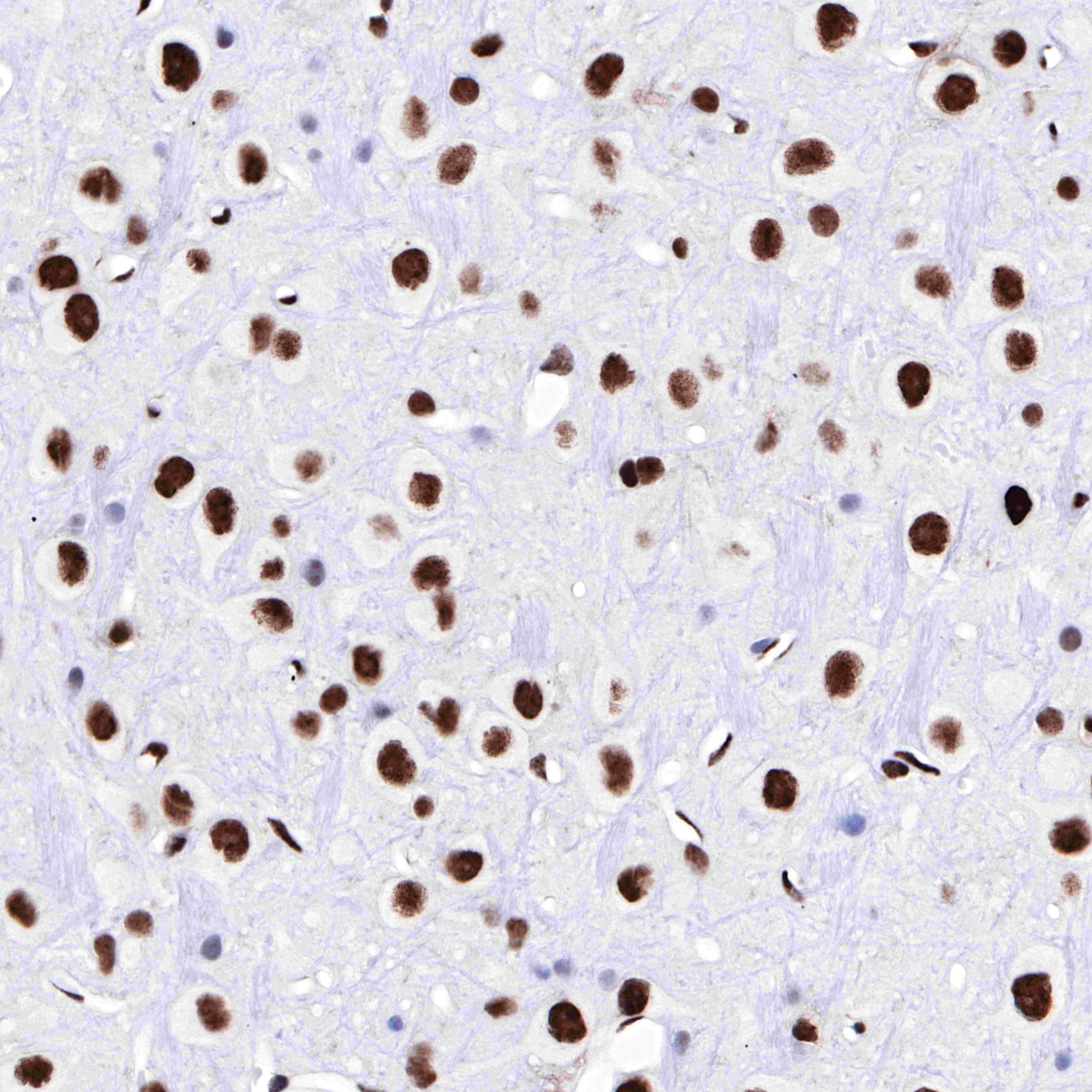 IHC shows positive staining in paraffin-embedded human cerebral cortex. Anti-FUBP1 antibody was used at 1/1000 dilution, followed by a HRP Polymer for Mouse & Rabbit IgG (ready to use). Counterstained with hematoxylin. Heat mediated antigen retrieval with Tris/EDTA buffer pH9.0 was performed before commencing with IHC staining protocol.