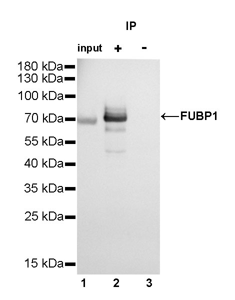 Western blot was performed on the immunoprecipitate using FUBP1 Rabbit mAb at 1/1000 dilution.