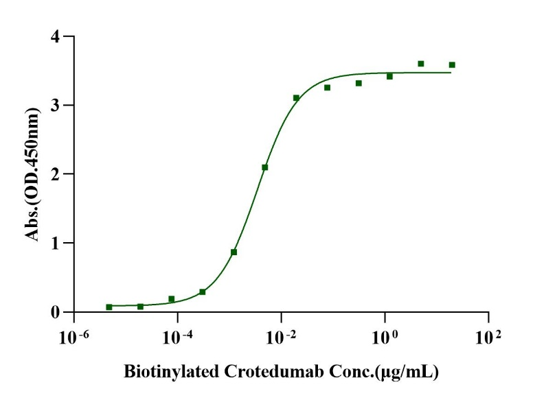 Immobilized GCGR FC Chimera, Human (Cat. No. UA010051) at 2.0μg/mL (100μL/well) can bind Biotinylated Crotedumab  with EC50 of 2.81-4.32ng/mL.