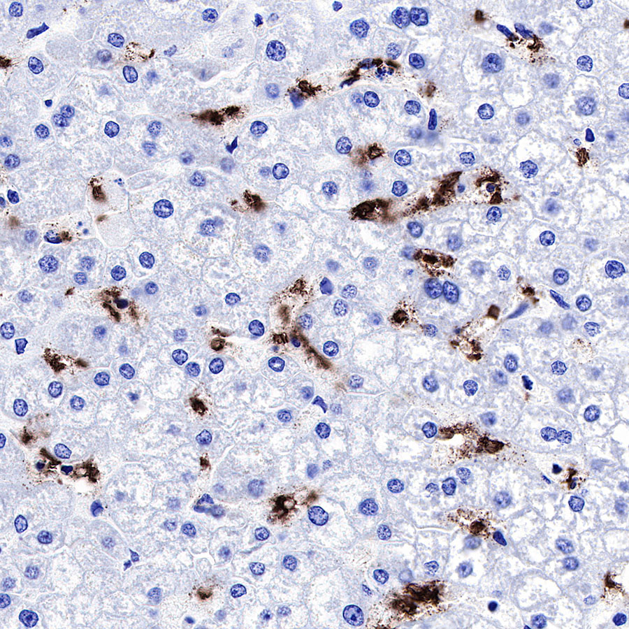 IHC shows positive staining in paraffin-embedded human liver. Anti-GLUT1 antibody was used at 1/1000 dilution, followed by a HRP Polymer for Mouse & Rabbit IgG (ready to use). Counterstained with hematoxylin. Heat mediated antigen retrieval with Tris/EDTA buffer pH9.0 was performed before commencing with IHC staining protocol.