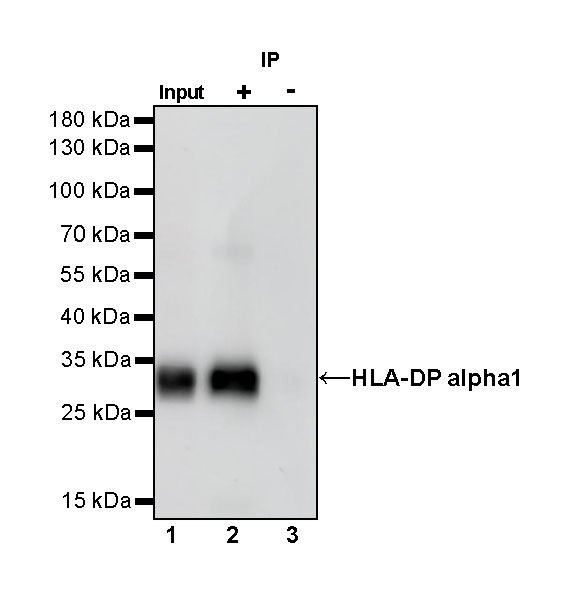 Western blot was performed on the immunoprecipitate using HLA-DP alpha1 Rabbit mAb at 1/1000 dilution.