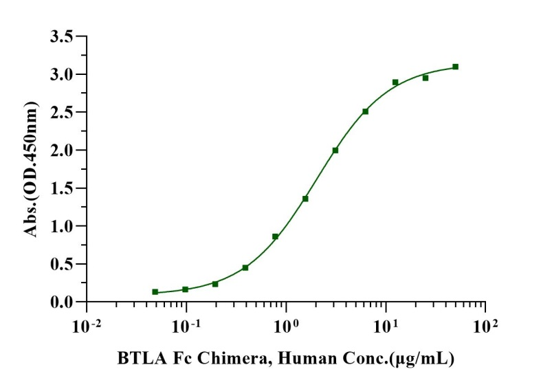 Immobilized HVEM/TNFRSF14, Human (Cat. No. UA010658) at 2.0μg/mL (100μL/well) can bind BTLA Fc Chimera, Human