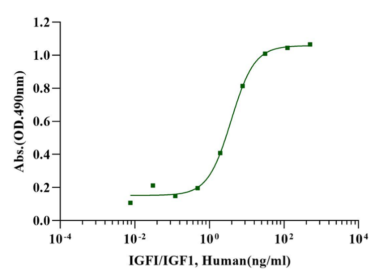 Insulin-like growth factor 1 (IGF-1) is also known as somatomedin C, IGF1A, IGFI, sulfation factor, and is a hormone similar in molecular structure to insulin. IGF-1 Protein binds to cell surface receptor IGF type 1 receptor, which abbreviated as "IGF1R" and modulates growth in many tissues, such as nervous tissue, lymphoid tissue, reproductive tissue, smooth muscle, endothelium, and bone. IGF-1 Protein also mediates neuroprotective mechanism. It is produced primarily by the liver as an endocrine hormone as well as in target tissues in a paracrine/autocrine fashion. IGF-1 consists of 70 amino acids in a single chain with three intramolecular disulfide bridges. IGF-1 has a molecular weight of 7649 daltons.