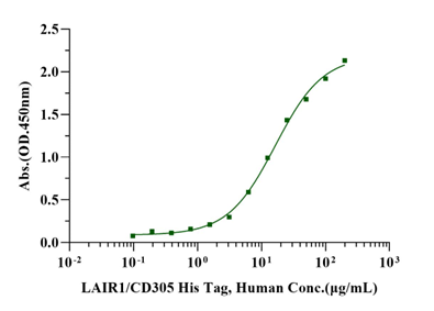 Immobilized Cell AdhereTM Type I collagen, Human, Lyophilzed at 20μg/mL (100μL/well) can bind LAIR1/CD305 His Tag, Human (Cat. No. UA010086) with EC50 of 13.92-20.30μg/ml.