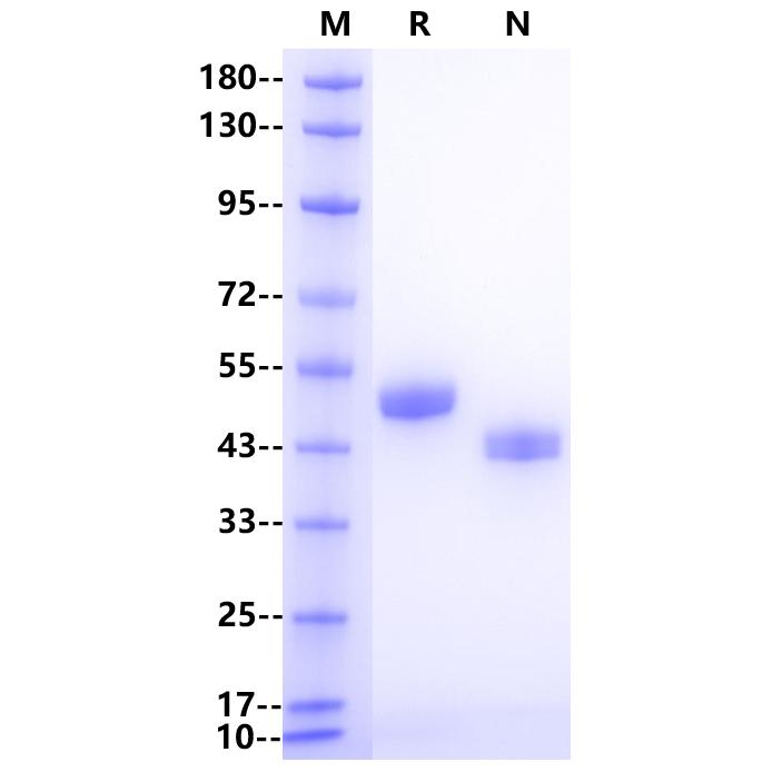 Nectin-2/CD112 His Tag, Human,2μg on SDS-PAGE under reducing and Non-reducing condition. The purity is greater than 95%.