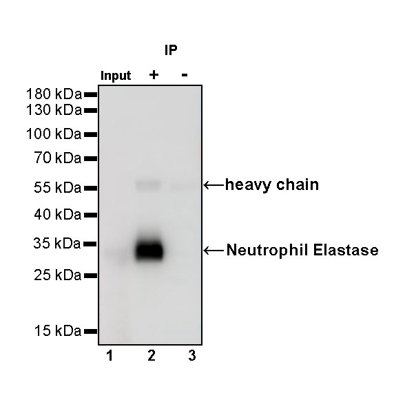 Western blot was performed on the immunoprecipitate using Neutrophil Elastase Rabbit mAb at 1/1000 dilution.