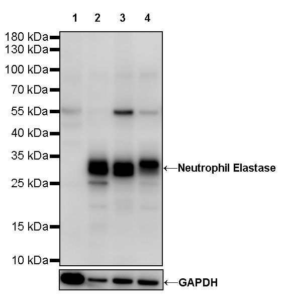 Lane 2: Neutrophil Elastase Rabbit mAb IP in U937 whole cell lysate