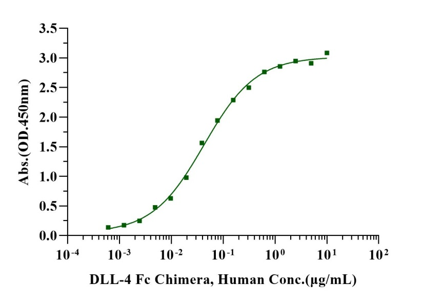 Immobilized NOTCH1 His Tag, Human (Cat. No. UA010215) at 2.0μg/mL (100μL/well) can bind DLL-4 Fc Chimera, Human (Cat. No. UA010644) with EC50 of 36.38-50.28ng/mL .