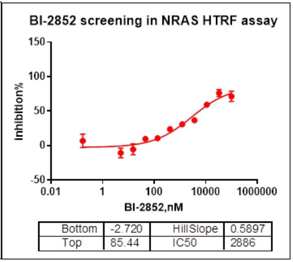 of BI-2852, NRAS protein, substrate and beads at 25℃ for 60 min, then reading ratio 665/620 with BMG.