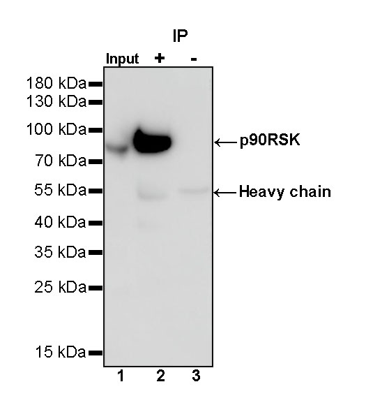 Western blot was performed on the immunoprecipitate using p90RSK Rabbit pAb at 1/1000 dilution.