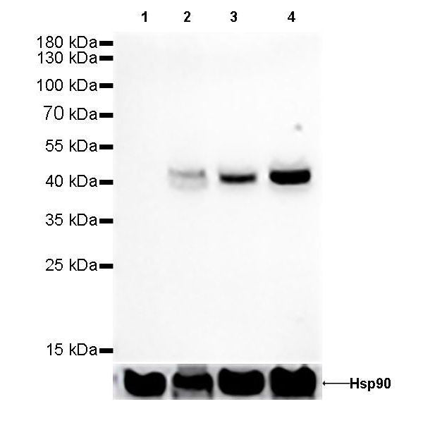 Secondary antibody: Goat Anti-Rabbit IgG, (H+L), HRP conjugated at 1/10000 dilution