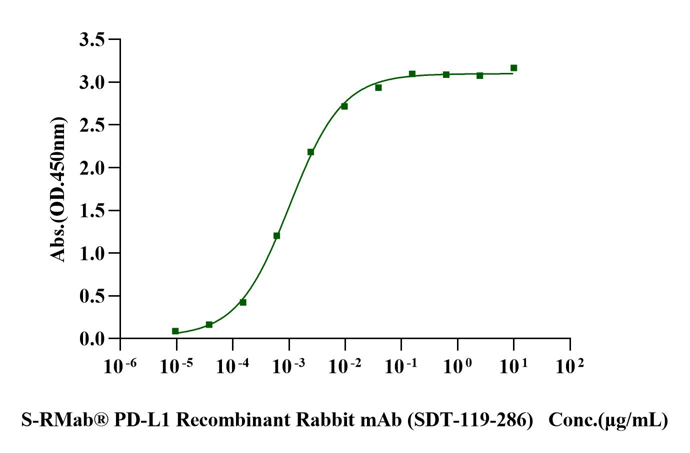 Immobilized PD-L1 His Tag Protein, Human (Cat. No. UA010001) at 1.0μg/mL (100μL/well) can bind S-RMab® PD-L1 Recombinant Rabbit mAb (SDT-119-286) (Cat. No. S0B2287) with EC50 of 0.89-1.21ng/mL.