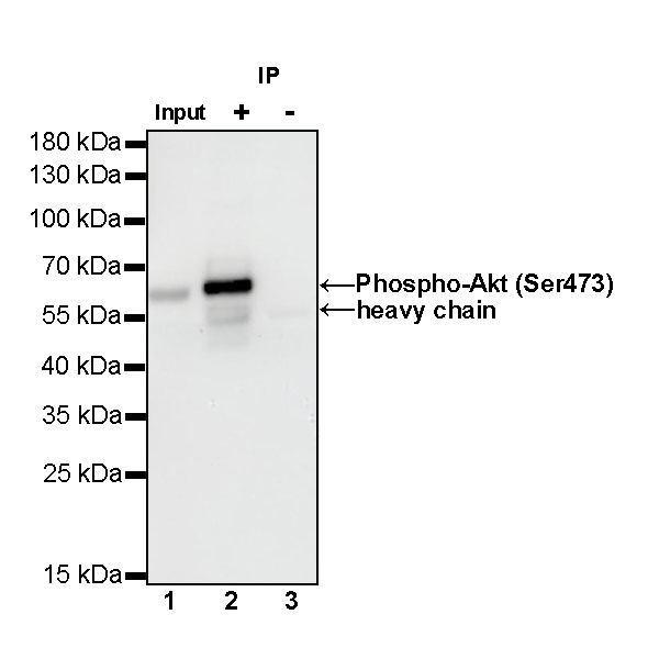 Western blot was performed on the immunoprecipitate using Phospho-Akt (Ser473) Rabbit mAb at 1/1000 dilution.