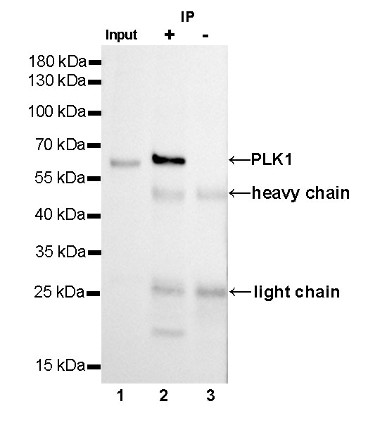 Western blot was performed on the immunoprecipitate using PLK1 Rabbit mAb at 1/1000 dilution.