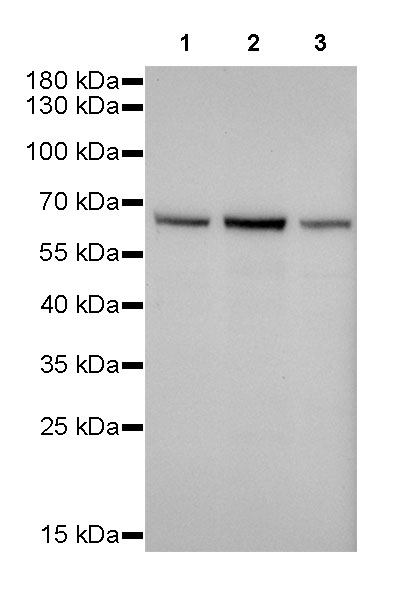 Lane 3 : Rabbit monoclonal IgG IP in K562 whole cell lysate