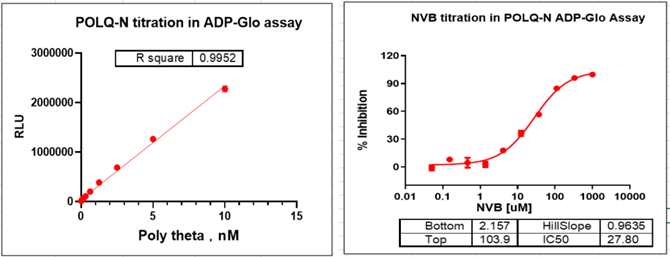 The POLQ-N activity was detected using ADP-Glo technology. The reaction was performed by incubating the POLQ-N protein, ATP and ssDNA at 25℃ for 40 min, then adding ADP-Glo reagent and reading RLU with BMG.