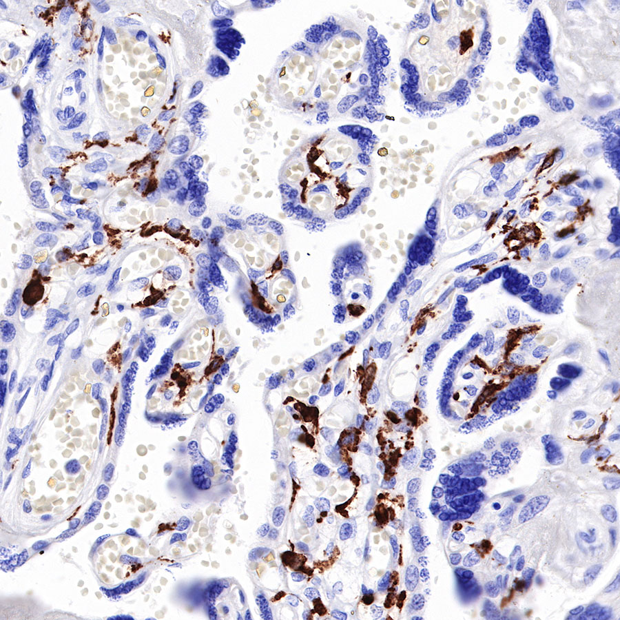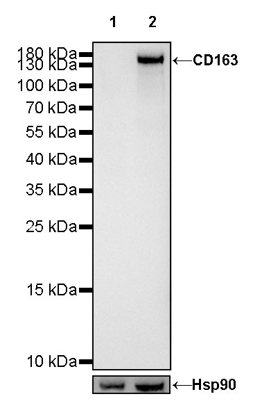 CD163 is a monocyte/macrophage specific marker expressed predominantly on cells which possess strong anti-inflammatory potential. The expression of CD163 is strongly induced by anti-inflammatory mediators such as glucocorticoids and interleukin-10, while being inhibited by pro-inflammatory mediators such as interferon-gamma. CD163-expressing mononuclear phagocytes, as well as soluble CD163, may both take part in downregulating an inflammatory response [PubMed: 22038213].