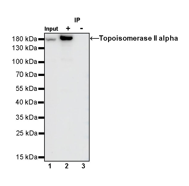 Western blot was performed on the immunoprecipitate using Topoisomerase II alpha Rabbit mAb at 1/1000 dilution.