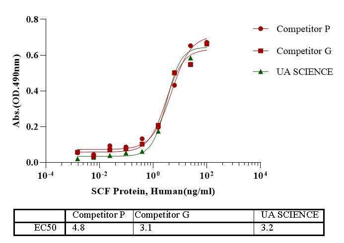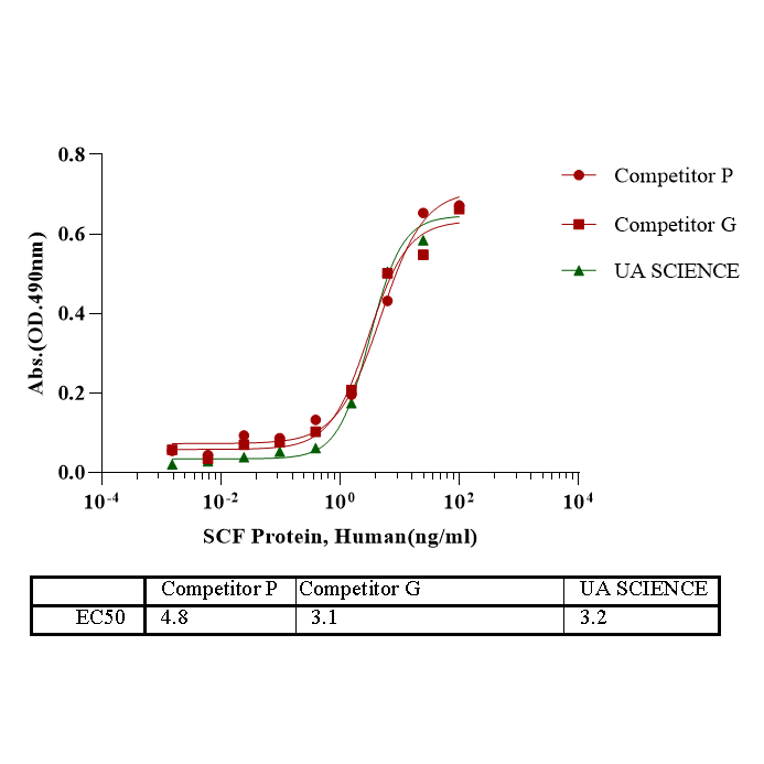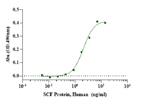 Stem Cell Factor is also known as SCF, kit-ligand, KL, steel factor, KITLG, FPH2, KL-1, Kitl, MGF, SCF, SF, or SHEP7, and is a cytokine that binds to the c-Kit receptor (CD117). Stem cell factors perform their biological functions by binding to and activating the receptor tyrosine kinase c-Kit. The human SCF gene encodes for a 273 amino acid transmembrane protein, which contains a 25 amino acid N-terminal signal sequence, a 189 amino acid extracellular domain, a 23 amino acid transmembrane domain, and a 36 amino acid cytoplasmic domain. Stem cell factor (SCF) has been shown to stimulate the proliferation of myeloid, erythroid, and lymphoid progenitor cells in bone marrow culture and has been shown to work synergically with colony-stimulating factors.