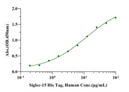 Immobilized Siglec-15 His Tag, Human (Cat. No. UA010421) at 10μg/mL (100μL/well) can bind Neu5Acα2-6GalNAcα-sp3-PAA-biot with EC50 of 8.55-18.10μg/ml.