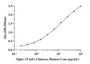 Siglec-15, one of the Sialic acid-binding immunoglobulin-like lectins (Siglecs) and type-1 transmembrane protein, is expressed mainly in human macrophages and dendritic cells. It is comprised of a lysine-containing transmembrane domain, two extracellular immunoglobulin (Ig)-like domains and a short cytoplasmic domain. Siglec-15 is highly conserved in vertebrates and acts as an immunoreceptor. It exerts diverse functions on osteoclast physiology as well as the tumor microenvironment. Unlike most Siglecs, which are inhibitory receptors, it associates with adapter proteins DAP10 and DAP12 via a transmembrane Lys274 residue for signal activation. Siglec-15 interacts with adapter protein DAP12-Syk signaling pathway to regulate the RANKL/RANK-mediated PI3K, AKT, and ERK signaling pathways during osteoclast formation in vitro. More recently, high Siglec-15 was also found to promote osteosarcoma progression via the activation of the DUSP1/MAPK signaling pathway, and hepatocellular carcinoma migration via CD44 interaction, which prevented lysosomal degradation. As Siglec-15 is mutually exclusive to PD-L1, it is now emerging as a novel immune inhibitor for anti-PD-1/PD-L1 resistant patients.