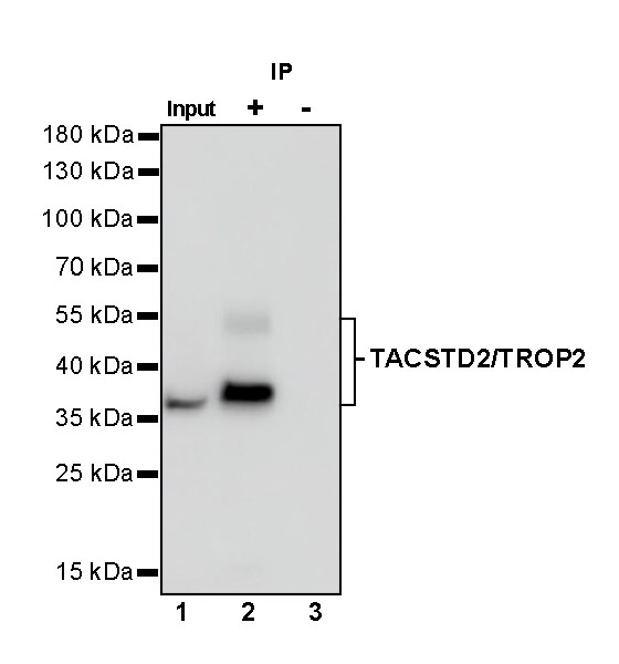 Western blot was performed on the immunoprecipitate using TACSTD2/TROP2 Rabbit mAb at 1/1000 dilution.