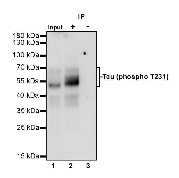Western blot was performed on the immunoprecipitate using Tau (phospho T231) Rabbit mAb at 1/1000 dilution.