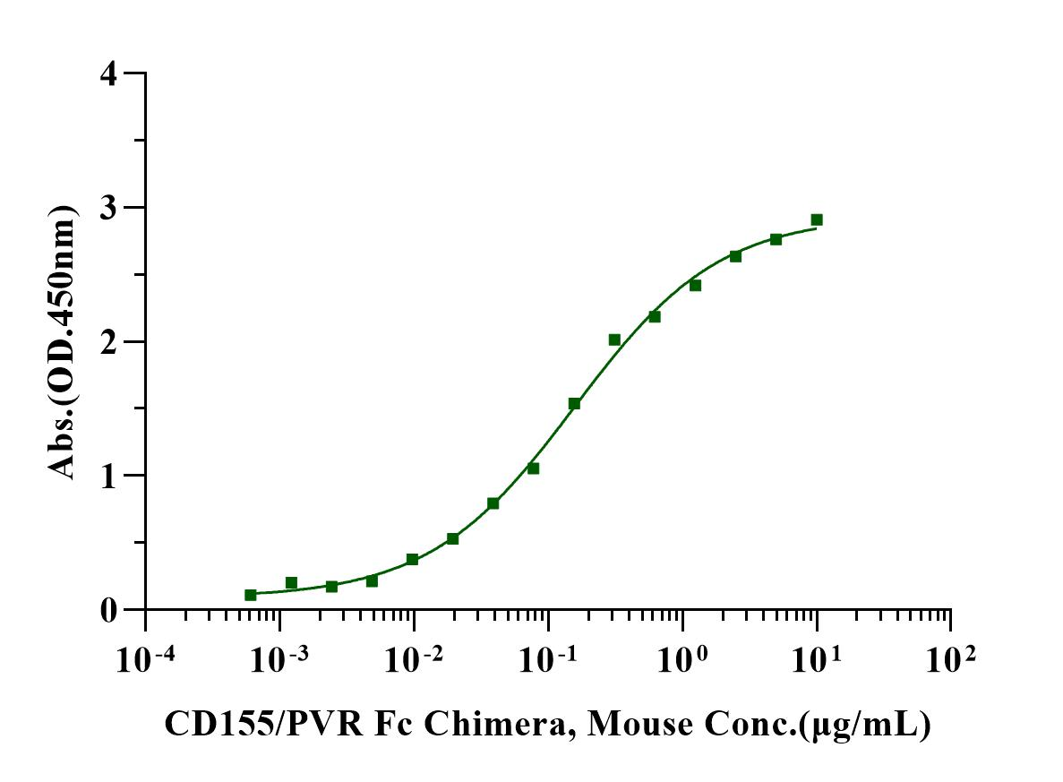 Immobilized TIGIT His Tag, Mouse (Cat. No. UA010084) at 2.0μg/mL (100μL/well) can bind CD155/PVR Fc Chimera, Mouse (Cat. No. UA010572) with EC50 of 0.13-0.19μg/mL .