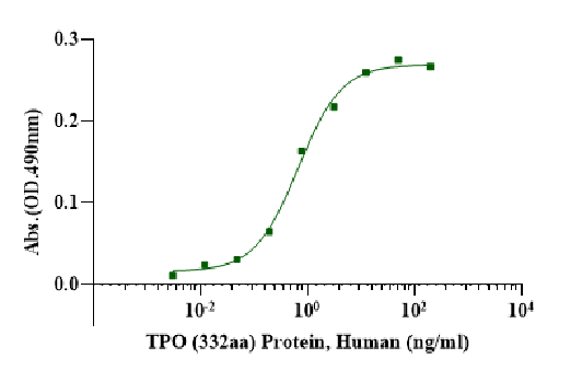 Thrombopoietin (TPO) is a glycoprotein hormone that plays a critical role in the regulation of platelet production and megakaryopoiesis, the process by which megakaryocytes give rise to platelets. TPO acts on hematopoietic stem cells and progenitor cells in the bone marrow, stimulating their differentiation into megakaryocytes and promoting platelet formation. TPO exerts its effects by binding to the c-Mpl receptor on the surface of hematopoietic cells, leading to the activation of signaling pathways that regulate cell proliferation, survival, and differentiation. Dysregulation of TPO signaling has been implicated in various hematological disorders, such as thrombocytopenia and myeloproliferative neoplasms.
