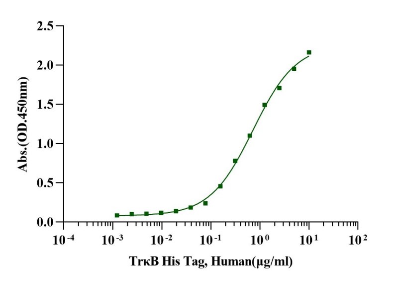 Measured by its binding ability in a functional ELISA. When Recombinant Human NT-4 is immobilized 2.5µg/ml (100 µl/well), Recombinant Human TrκB His Tag binds with an EC50 of 0.6-0.9μg/ml.