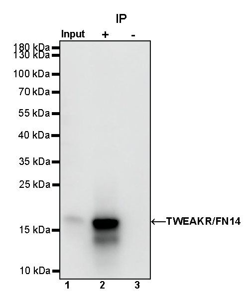 Western blot was performed on the immunoprecipitate using TWEAKR/FN14 Rabbit mAb at 1/1000 dilution.